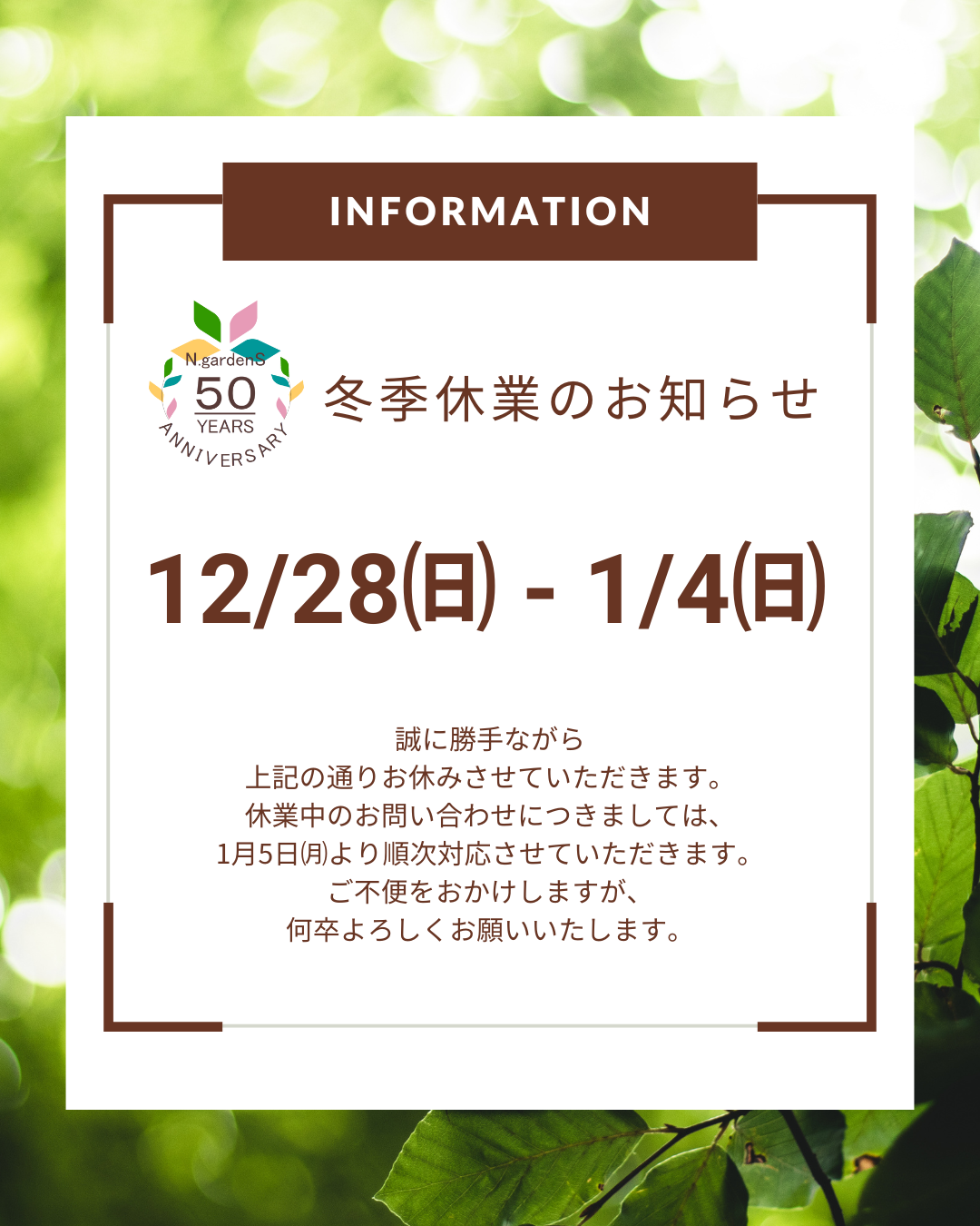 ●休業期間:2025年 12月28日(日) ~ 2026年1月4日(日)